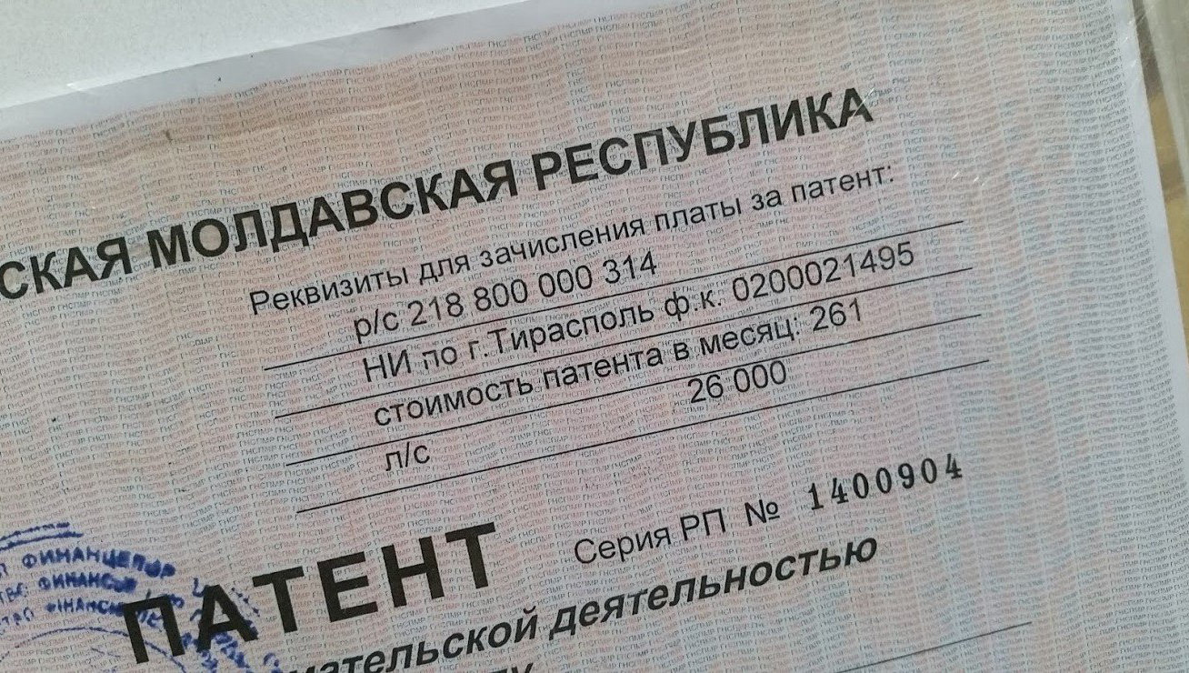 Индивидуальная предпринимательская деятельность (работа по патенту для ИП) на территории Приднестровья (ПМР), начиная с 2019
