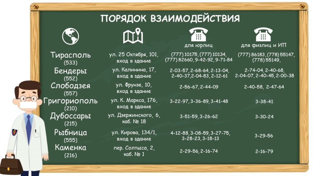 | Налоговая инспекции по г. Тирасполь | tiraspol@minfin-pmr.org |