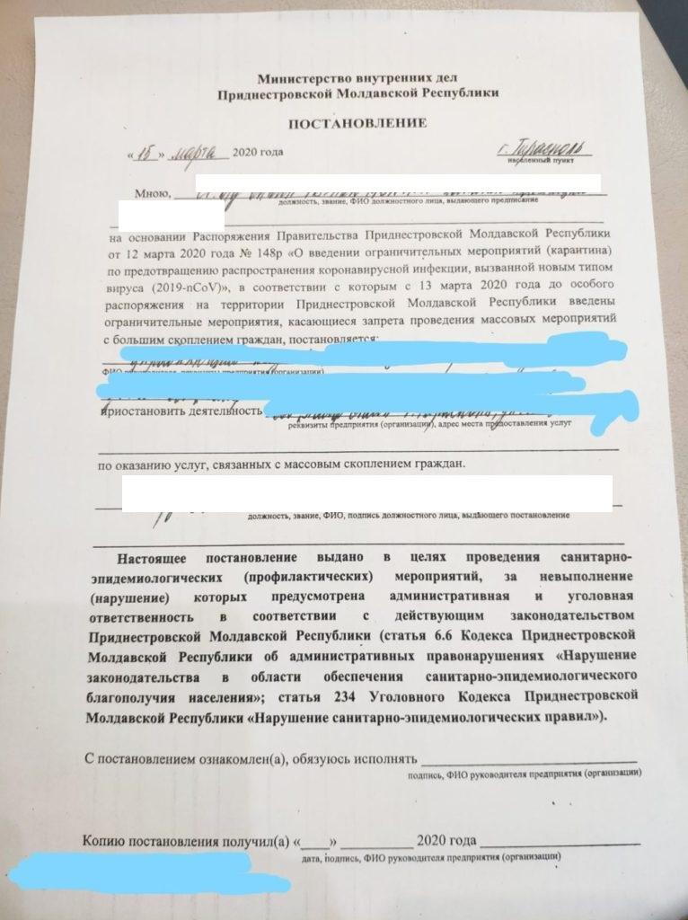 Правовые последствия коронавируса (форс-мажор, приостановление деятельности?) в ПМР